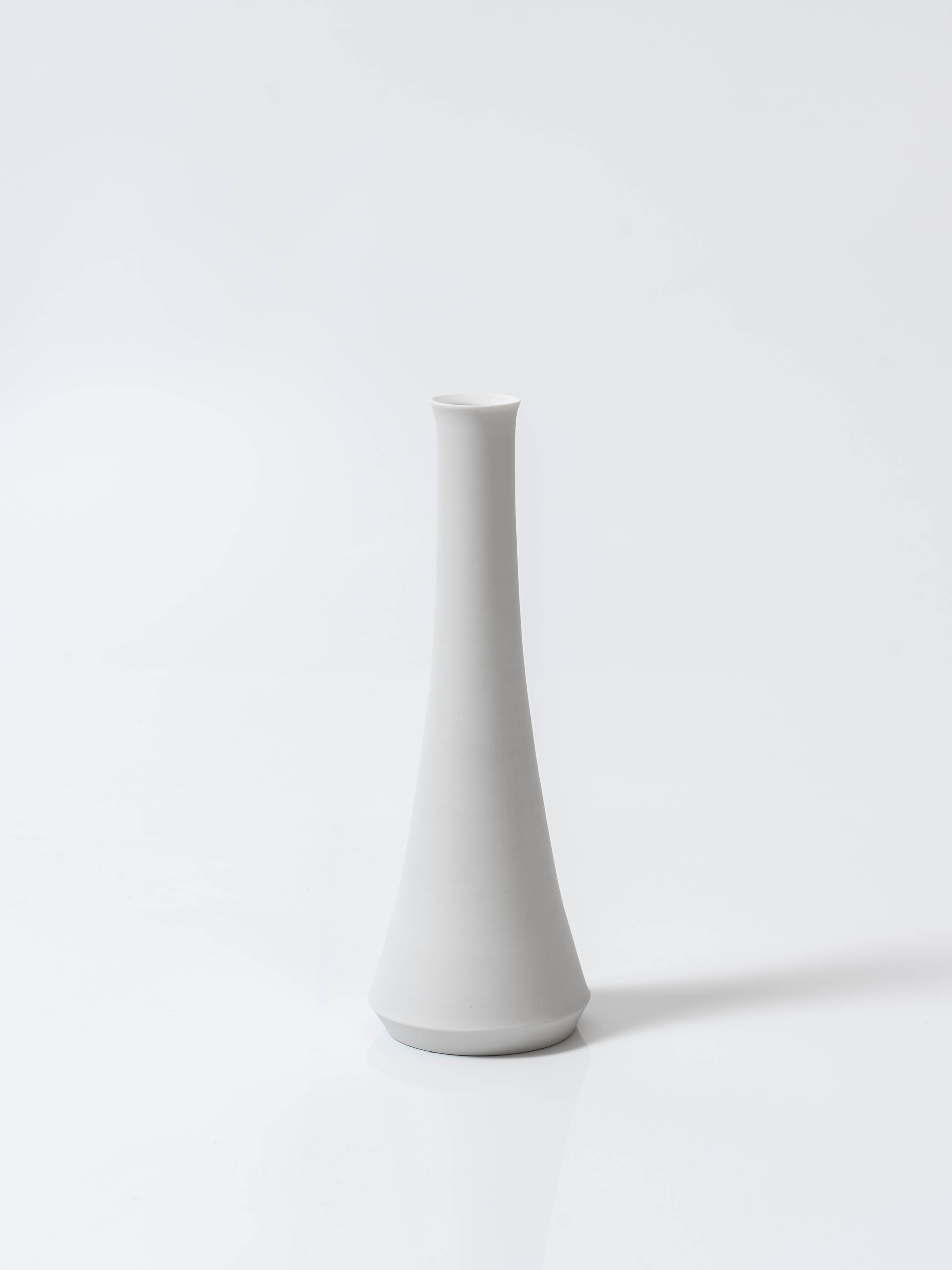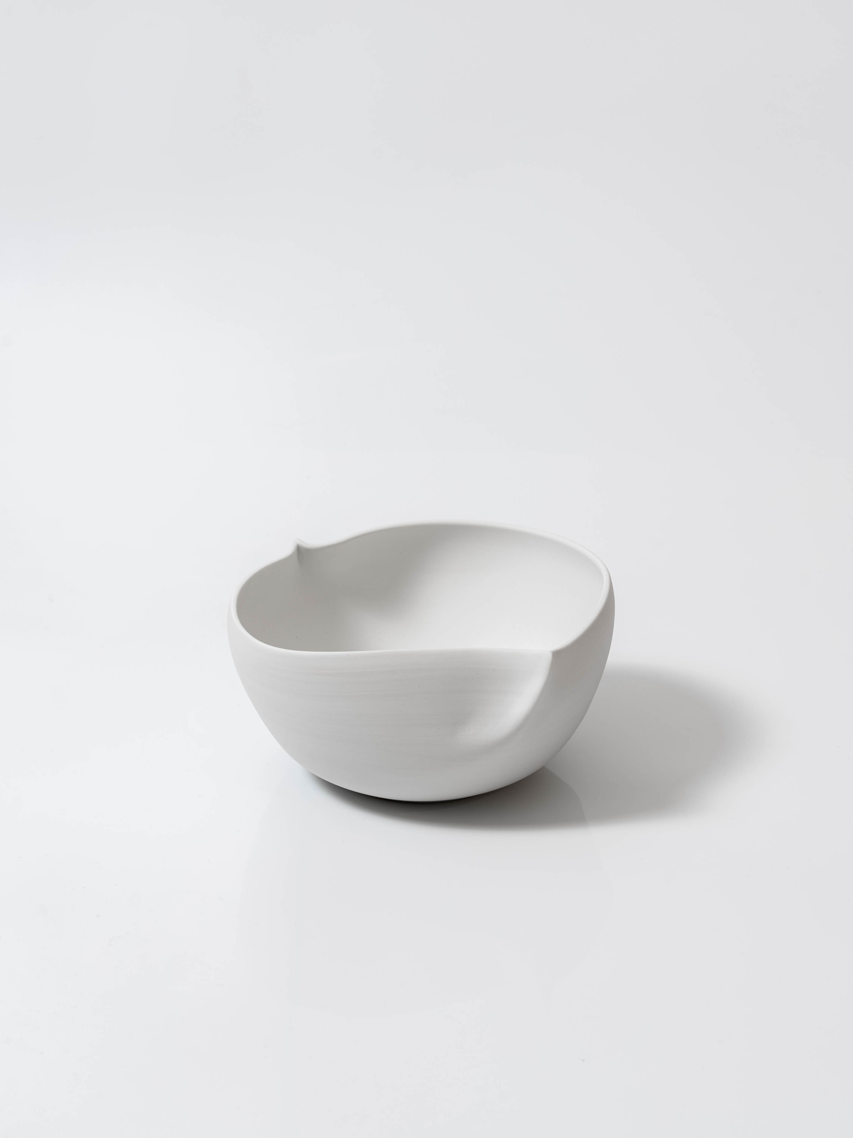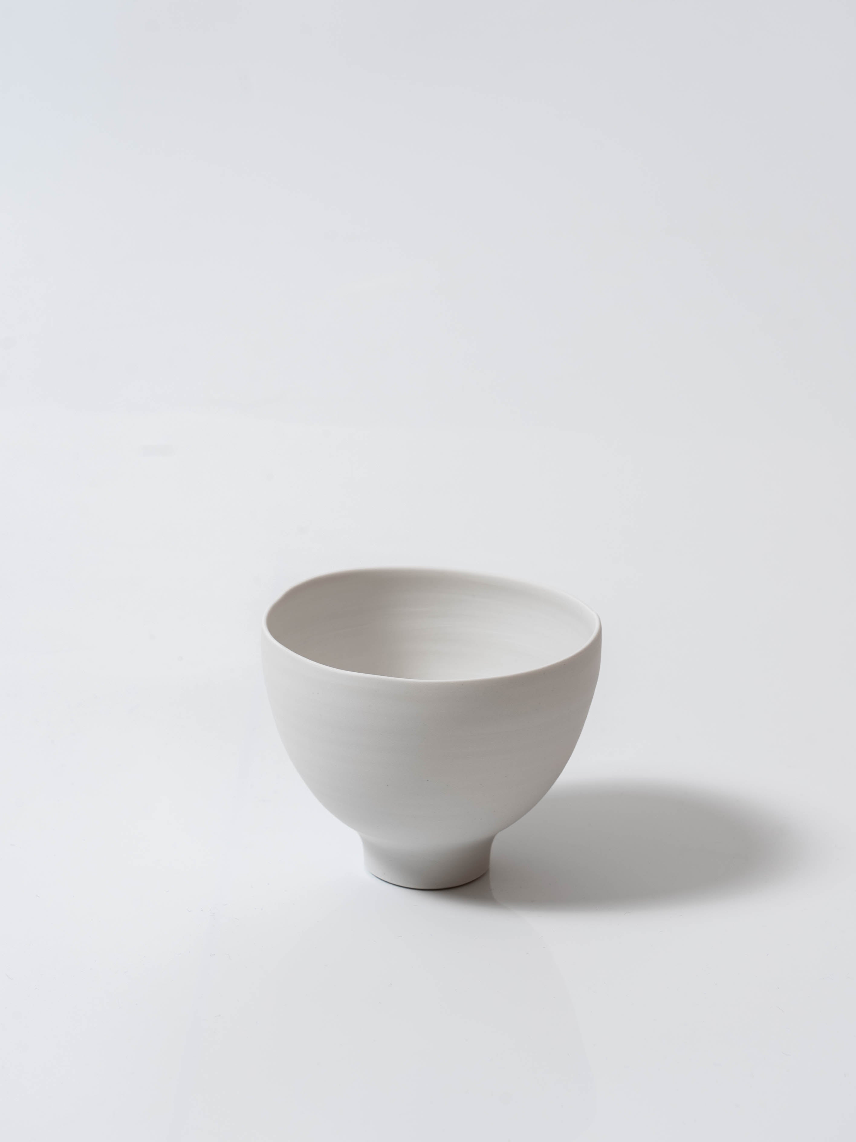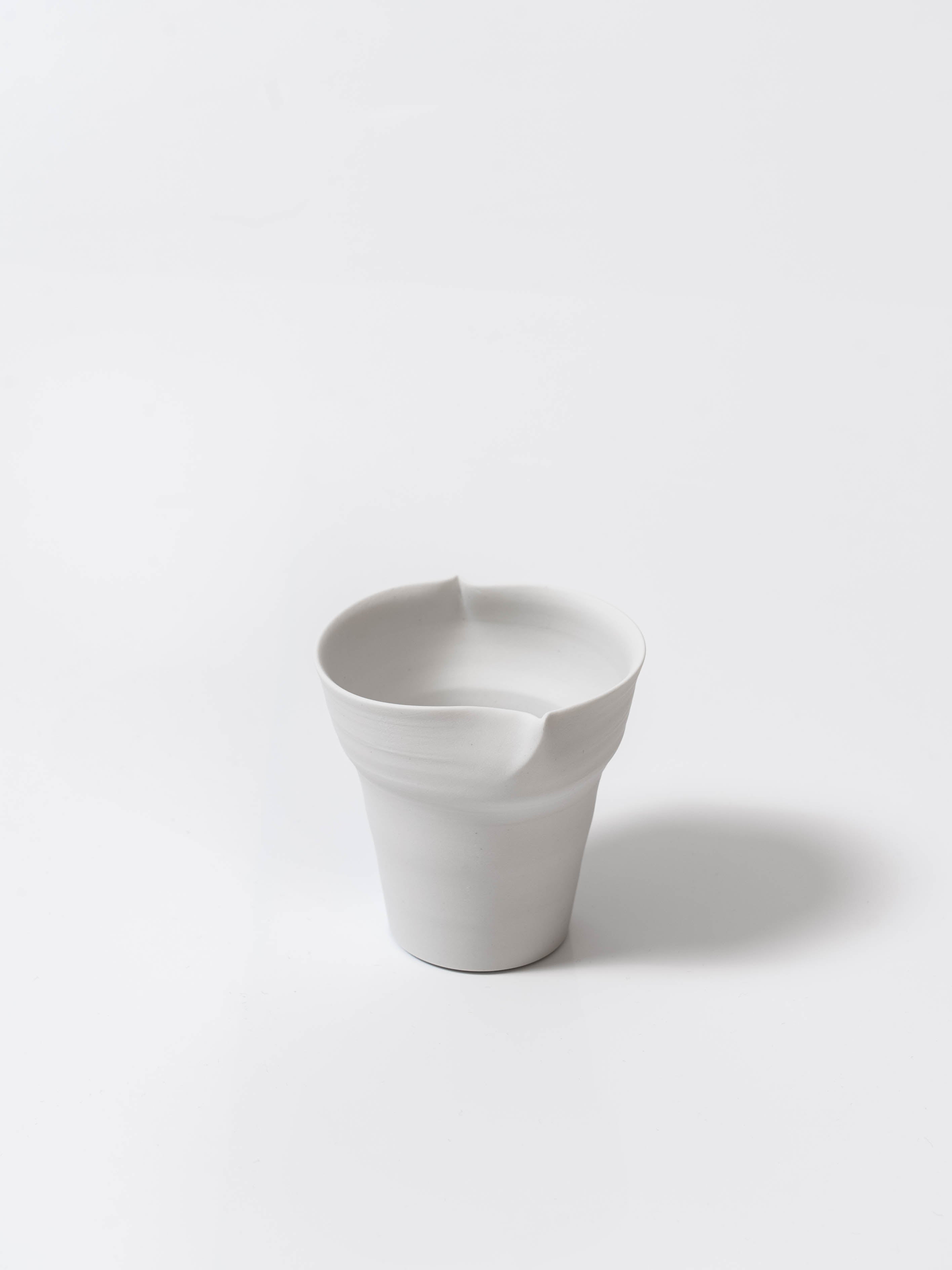 平安時代、宮中の膳や神前の祭壇にひそやかに置かれていた素焼きの器「瓦笥(かはらけ)」。釉薬を施さずに土の肌をそのまま見せるこの器は、日常と神事の間に在る器として平安時代の宮中や神事の場に静かに佇んでいました。『源氏物語』をはじめとする古典文学にもその名を留め、平安貴族の食卓における静かな気配として、また神を迎える祭祀の具として、人と神の間を取り持つ象徴的な存在でありました。特に平安時代において瓦笥は、御神酒を捧げる盃や三方の上に神饌を供える器として用いられており、素焼きという素材の選択にも、余計な美飾を廃してただ清らかさのみを際立たせる思想が宿っています。その瓦笥に着想を得て、現代の生活空間と美意識に合わせて生まれ変わらせたセラミックアートとなっています。磁器の持つ繊細で美しい輝き、澄み切った白、そして彫刻的・構築的な意匠。それに日本の伝統美を掛け合わせ、ほのかに王朝の香りが漂う現代の瓦笥として再解釈しました。
