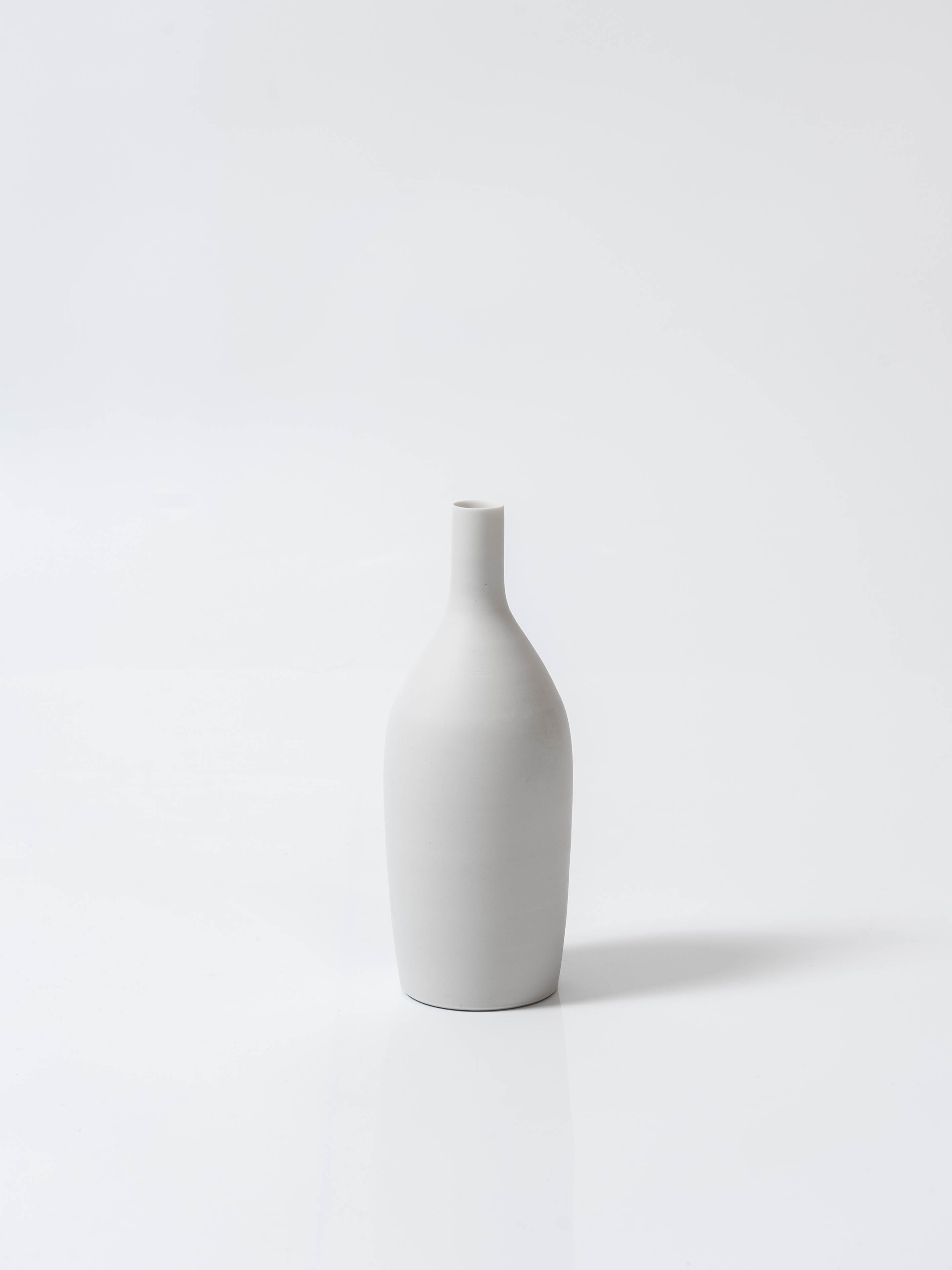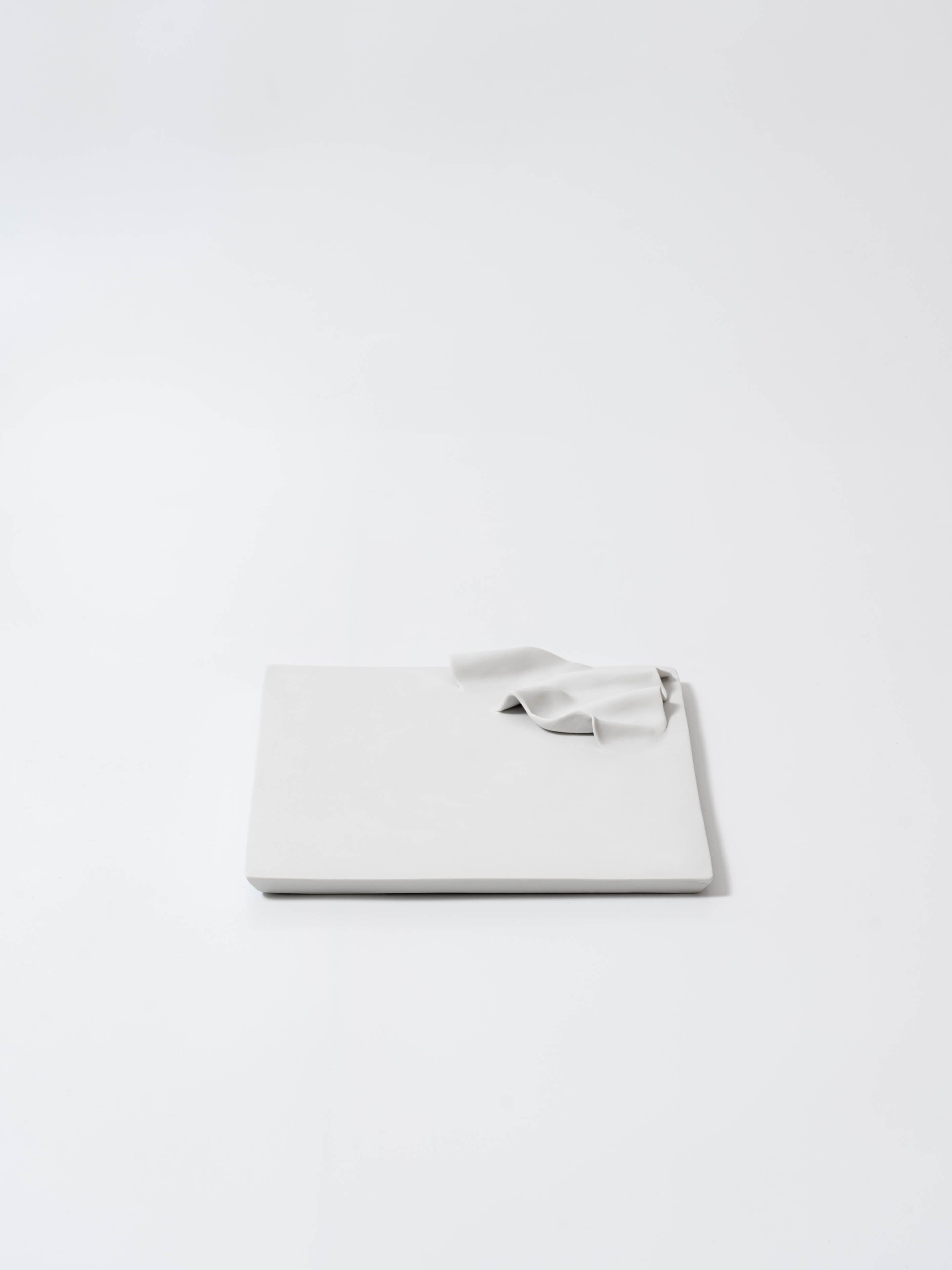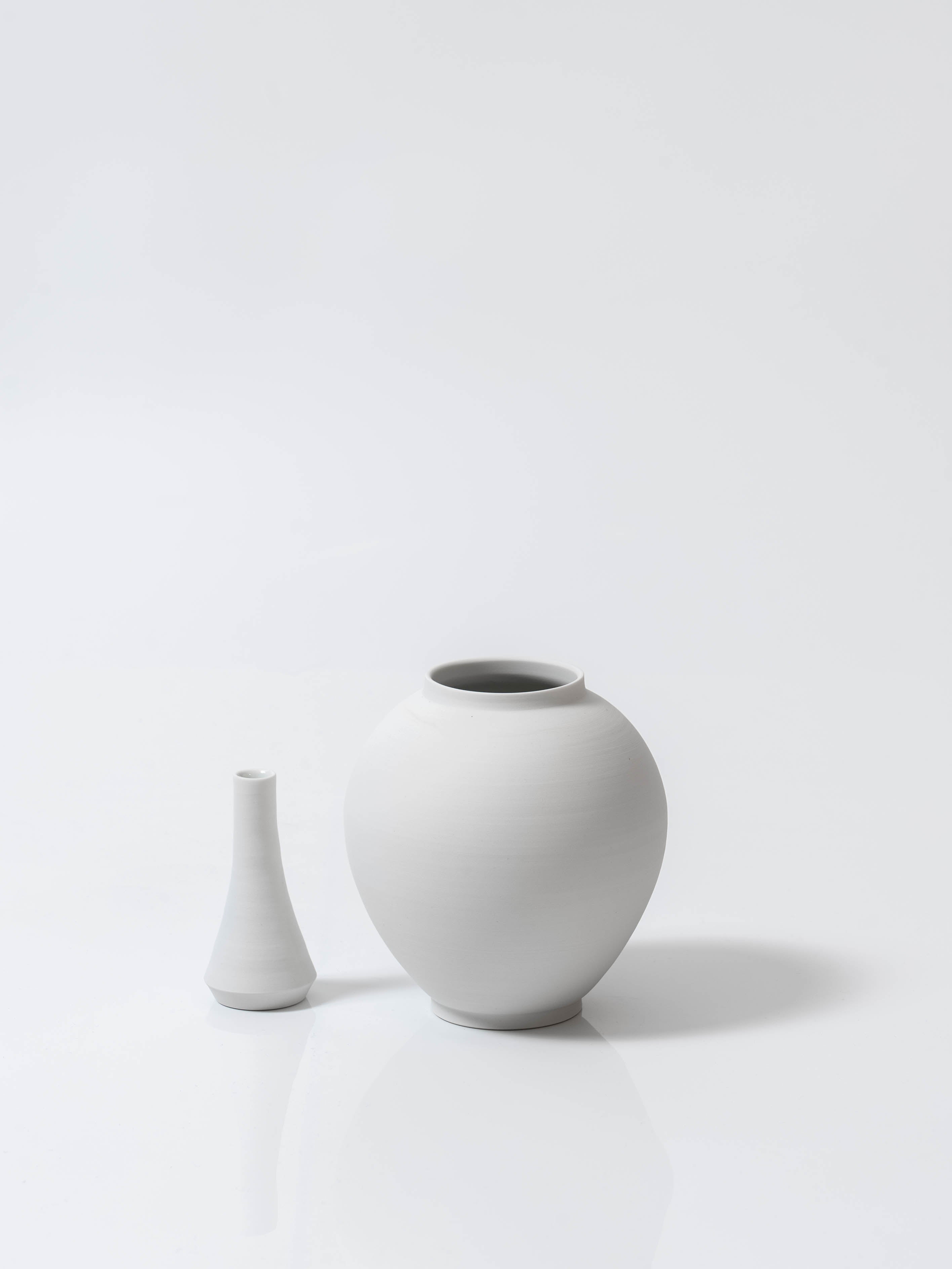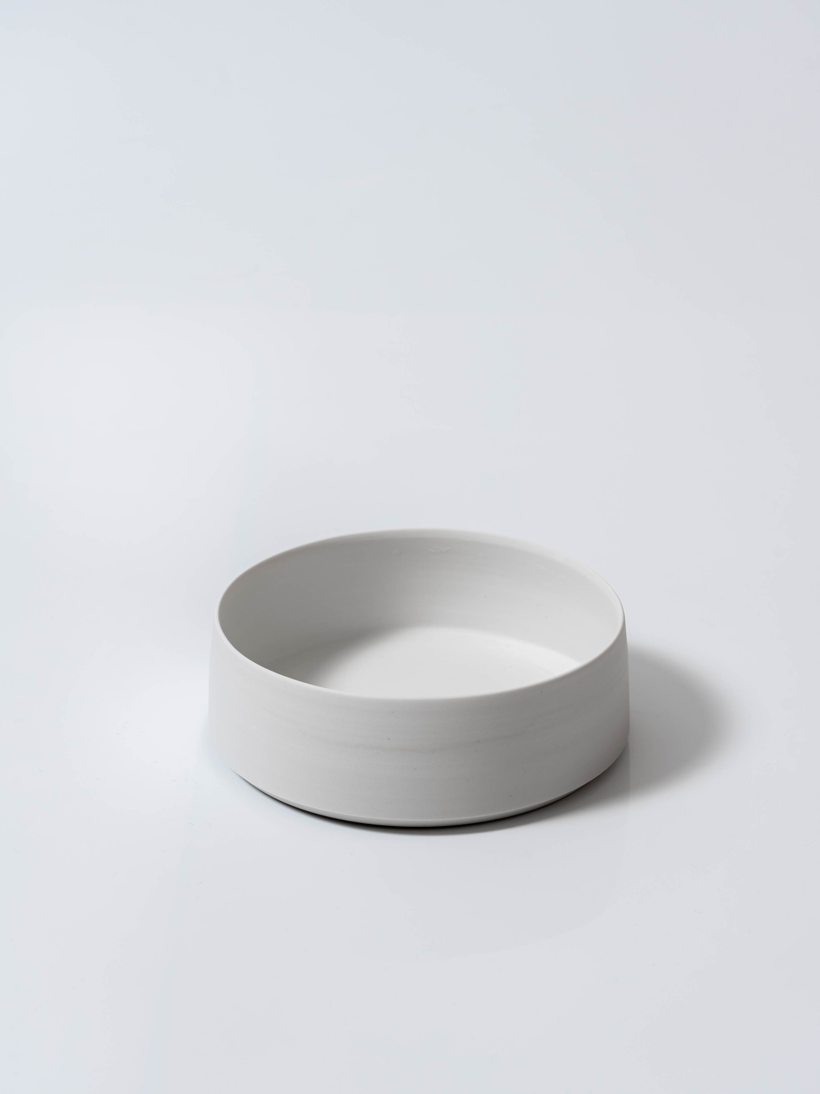 平安時代、宮中の膳や神前の祭壇にひそやかに置かれていた素焼きの器「瓦笥(かはらけ)」。釉薬を施さずに土の肌をそのまま見せるこの器は、日常と神事の間に在る器として平安時代の宮中や神事の場に静かに佇んでいました。『源氏物語』をはじめとする古典文学にもその名を留め、平安貴族の食卓における静かな気配として、また神を迎える祭祀の具として、人と神の間を取り持つ象徴的な存在でありました。特に平安時代において瓦笥は、御神酒を捧げる盃や三方の上に神饌を供える器として用いられており、素焼きという素材の選択にも、余計な美飾を廃してただ清らかさのみを際立たせる思想が宿っています。その瓦笥に着想を得て、現代の生活空間と美意識に合わせて生まれ変わらせたセラミックアートとなっています。磁器の持つ繊細で美しい輝き、澄み切った白、そして彫刻的・構築的な意匠。それに日本の伝統美を掛け合わせ、ほのかに王朝の香りが漂う現代の瓦笥として再解釈しました。