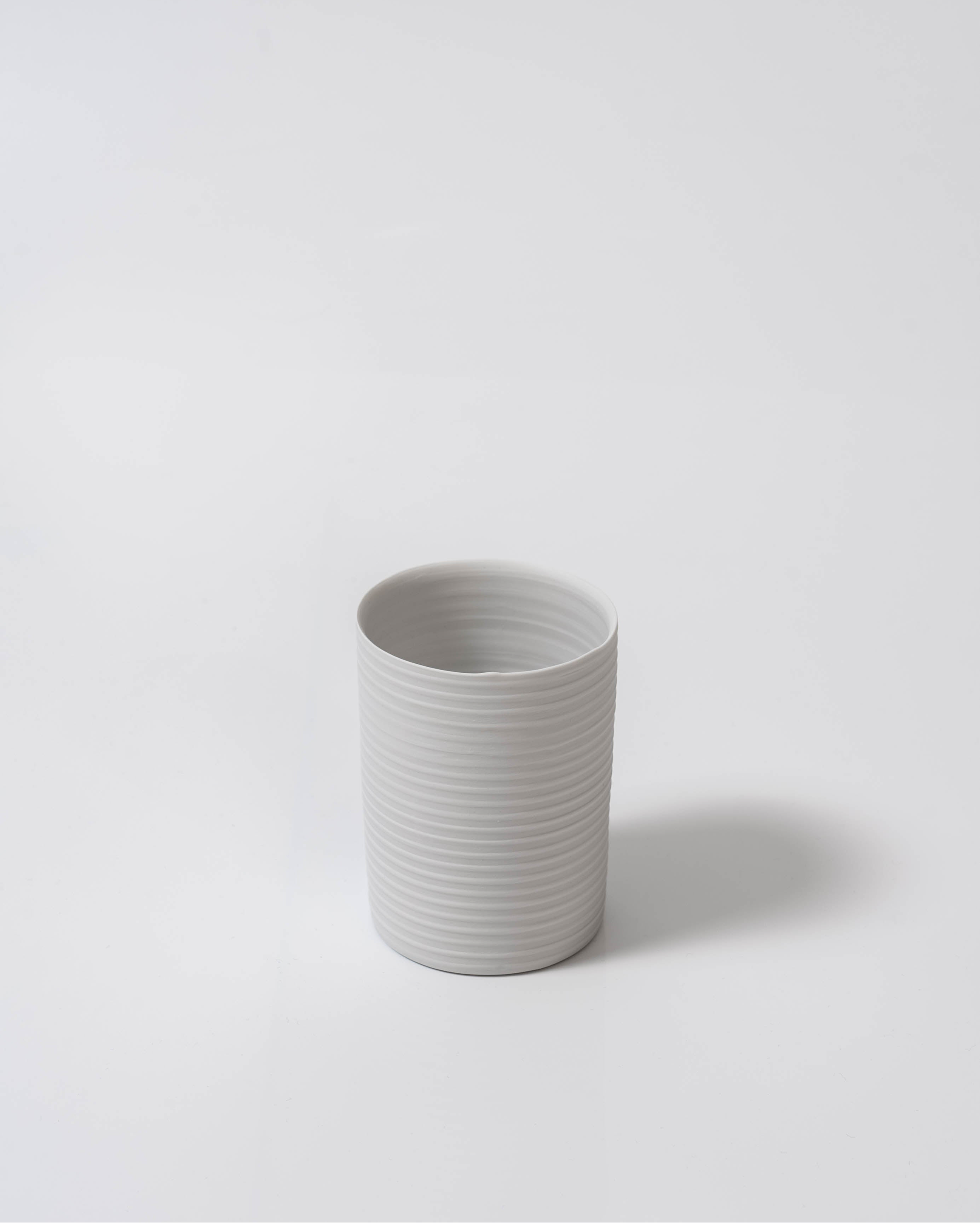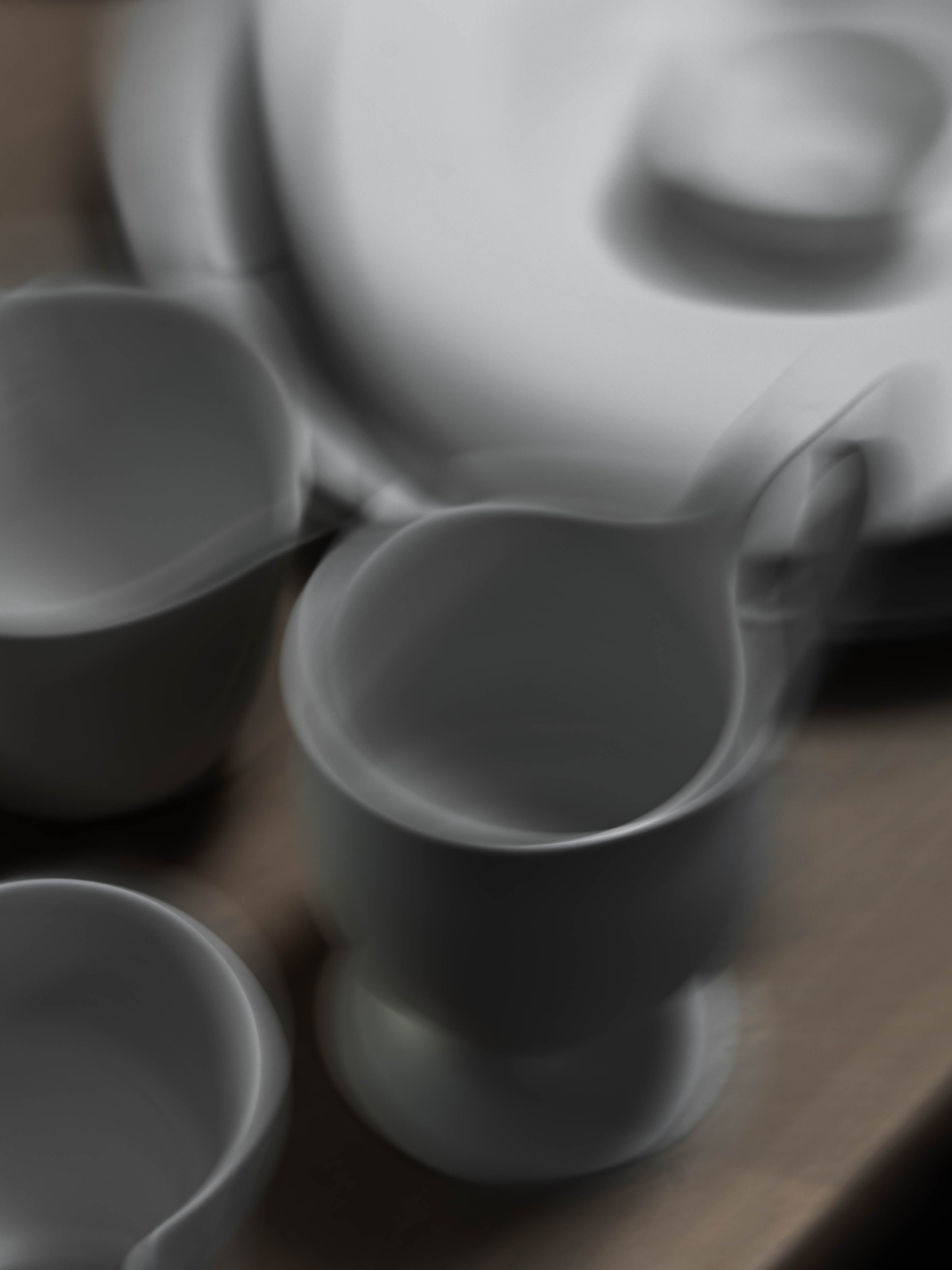 彼の手によって生み出されたこのシリーズは、平安の神聖性と現代の意匠が静かに交差する場となり、彼の手によって生まれた器たちは王朝の香りをほのかに漂わせつつも、造形は極めてモダンに、空間に溶け込みながら静かな存在感を放ちます。使うたびに“過去と今”とが静かに交差する体験を生み出す。単なる再現ではなく、“生ける古典”としての器の再創造であり、精神性と造形の両極を極めた、現代のラグジュアリーのかたち。神聖と日常の境界に生まれた器を私たちの生活の中に蘇らせ、過去の美を継承しながら現代に息づかせるという選択がこのシリーズのコンセプトとなっています。