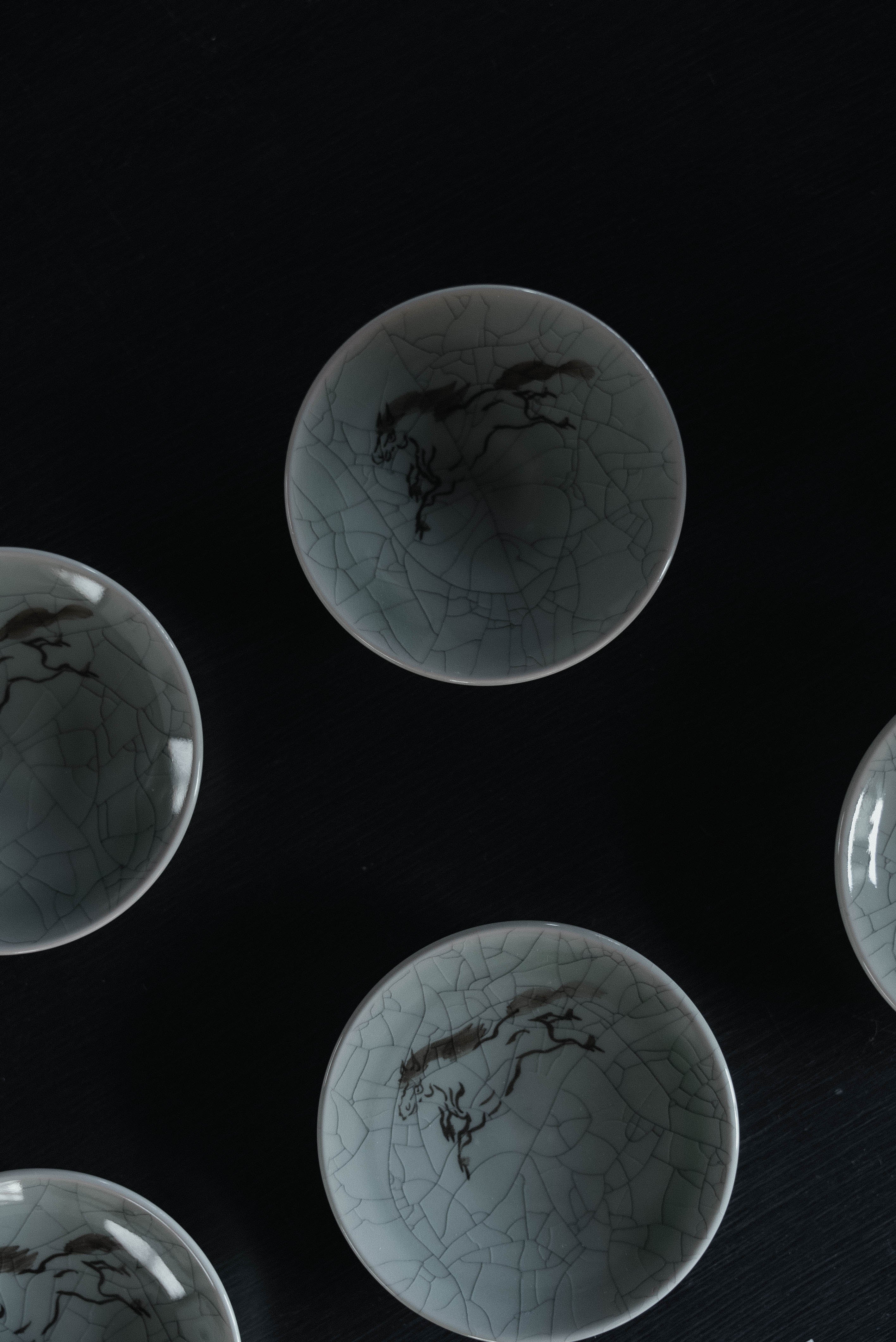 大堀相馬焼は福島県浜通り、浪江町大堀を発祥とする、相馬藩の保護のもと育まれてきた伝統工藝品です。江戸時代、相馬藩は「相馬野馬追」という伝統的祭事で知られ、その地の紋章ともいうべき御神馬が陶器の意匠にも深く刻まれました。作として用いる「走り駒」の絵柄には武運長久や家運隆盛を願う縁起物としての意味が込められており、藩をあげて大切に扱われてきた工藝品でありました。特に、江戸時代三代将軍の徳川家光の時代には、全国の諸藩が参勤交代で奉る引出物の中でも最も価値ある品として大堀相馬焼が位置づけられたとの記録も残ります。その制作技法は長らく極めて秘伝とされ、ほんの一部の陶匠だけがその技を継承。約三百年を超える歴史を誇る窯元が今日もその技を伝えています。昭和53年(1978年)には通商産業大臣(現・経済産業大臣)により「伝統的工芸品」に指定されています。